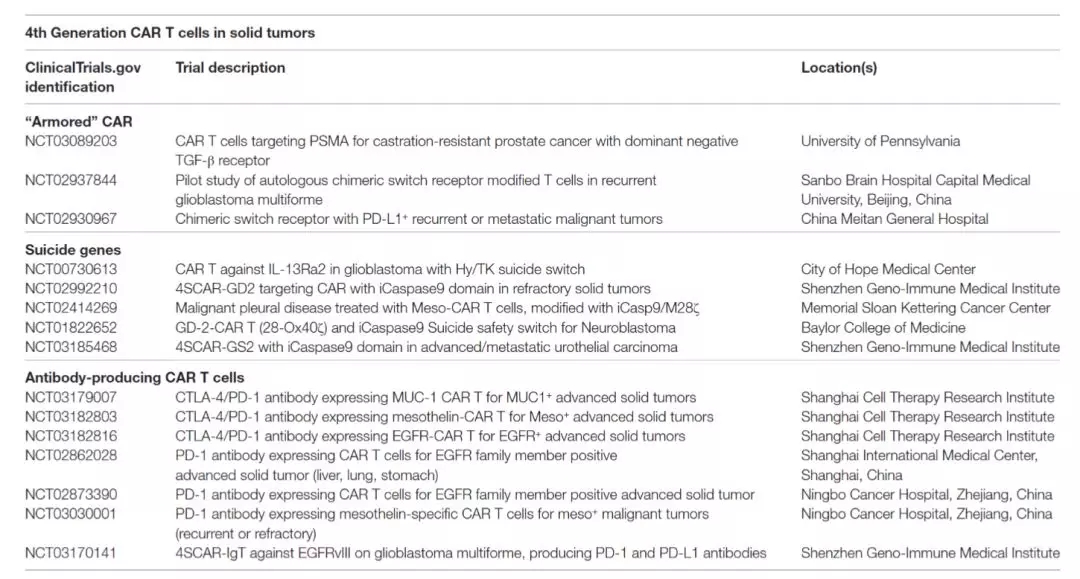表4 采用不同策略下的實(shí)體瘤CAR-T臨床試驗(yàn)