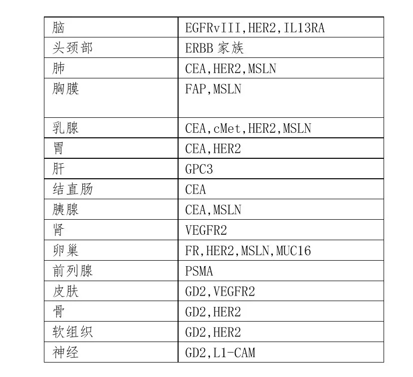 表2 CAR-T實(shí)體瘤靶點(diǎn)