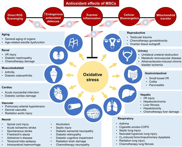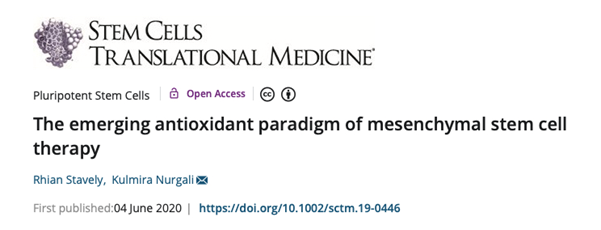 [1] Stavely, R,  Nurgali, K.  The emerging antioxidant paradigm of mesenchymal stem cell therapy. STEM CELLS Transl Med.  2020; 1– 24. https://doi.org/10.1002/sctm.19-0446