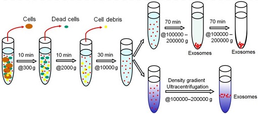 超速離心法是分離外泌體的標(biāo)準(zhǔn)方法。在4℃條件下依次以300G2000G10000G的轉(zhuǎn)速離心,依次去除細(xì)胞和細(xì)胞碎片等,再以100000G超速離心得到外泌體。但離心法每次處理的樣本量較小,而且反復(fù)高速離心會(huì)導(dǎo)致外泌體破裂影響質(zhì)量??筛鶕?jù)外泌體密度使用連續(xù)梯度蔗糖密度梯度離心法,蔗糖對(duì)細(xì)胞無(wú)毒,粘度不高且pH中性,所獲外泌體純度高,但含有難以去除的高密度化學(xué)物,不適合臨床應(yīng)用。超濾法用孔徑小于100nm的超濾膜短時(shí)間低速離心就可以分離得到外泌體,但超濾時(shí)施加的壓力比較大,導(dǎo)致體積大的囊泡變形和破裂。