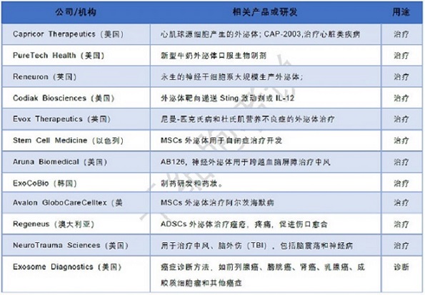 基于外泌體開(kāi)發(fā)和應(yīng)用的部分企業(yè)(圖:干細(xì)胞者說(shuō)制)